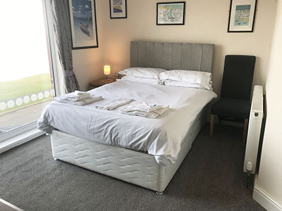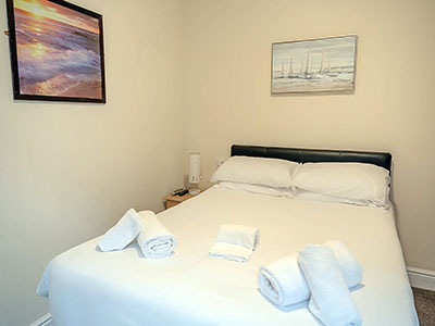 Located on the first floor, this compact double room comes complete with large en-suite bathroom (shower), double bed and a wall mounted high definition television with Sky TV (including movies and sports). Whilst not benefiting from a sea view this room is in a tranquil location at the side of the property.